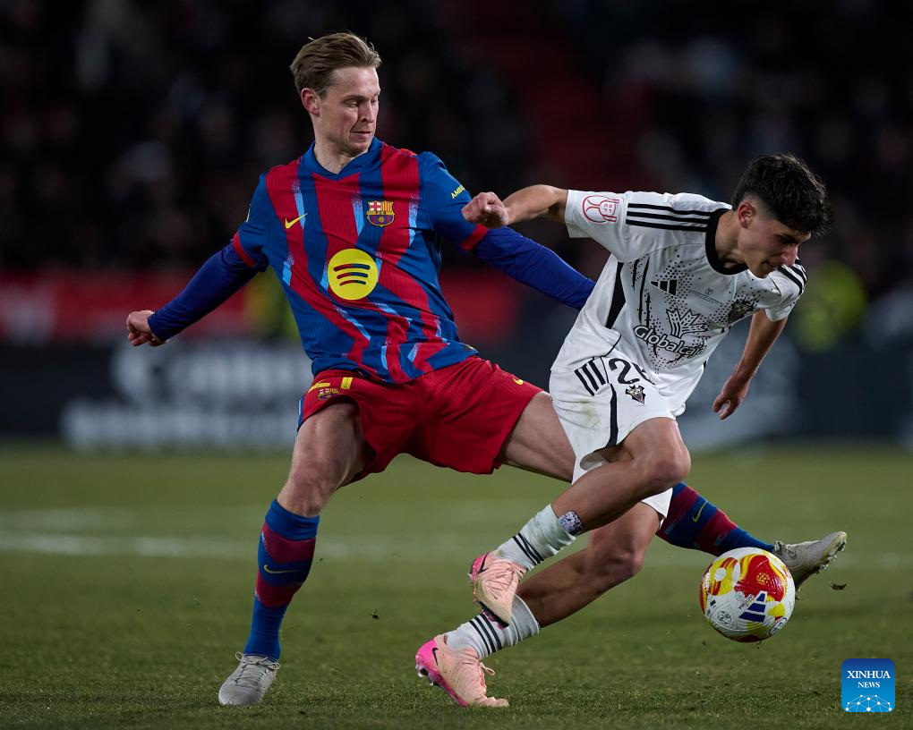 - Ronald Araújo of Barcelona challenges Antonio Puertas of Albacete during the quarterfinal encounter.