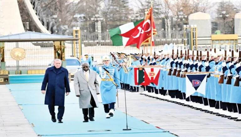 The ceremonial reception commenced at about 5:00 pm local time, featuring the playing of the Nigerian and Turkish national anthems, followed by a traditional 21-gun salute.